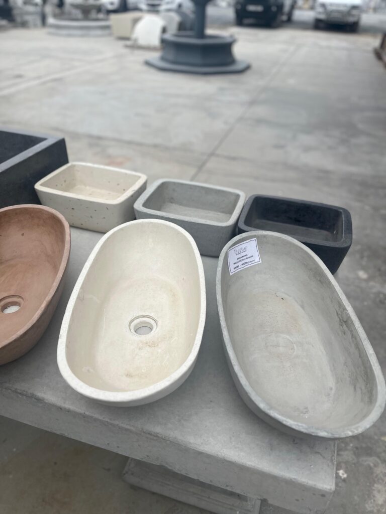 White and Grey oval cement basin